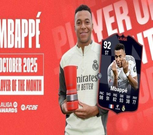 官方消息,皇家马德里前锋姆巴佩当选西甲联赛10月最佳球员。姆巴佩在10月代表皇马参加了全部3场西甲联赛的比...