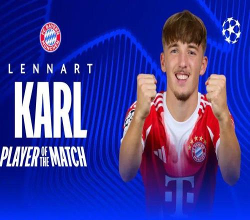为球队首开记录!17岁卡尔当选拜仁vs布鲁日全场最佳球员