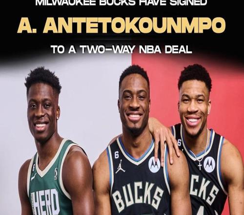 雷速体育10月14报道 名记Shams今日在社交媒体上,报道了雄鹿与字母哥的弟弟亚历克斯·安特托昆博达成双向合...