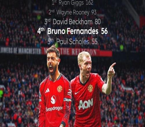 • 曼联队史英超助攻榜:吉格斯162次居首,B费56次升至第4名