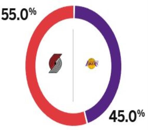 赛前,美媒ESPN预测本场比赛胜率,其中湖人为45%,开拓者为55%。