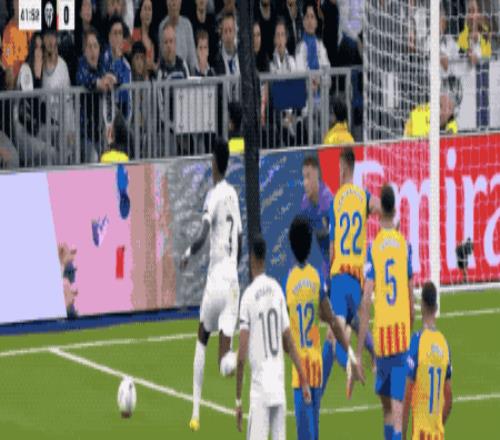 第43分钟,贝林厄姆在禁区线附近连续盘带,突然起脚,皮球直钻死角,皇马半场结束就已经3-0领先了。