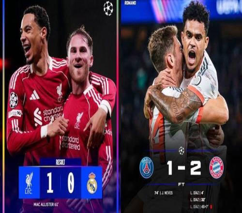 利物浦坐镇主场迎战皇家马德里,巴黎圣日耳曼主场面对拜仁慕尼黑,利物浦和拜仁成功笑到最后!