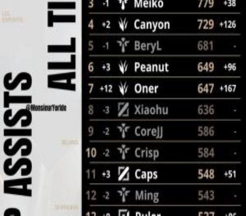 外媒统计全球总决赛最新助攻榜:Faker、Keria有望破千 路过的假面骑士 2025-11-06 18:10:30 电竞体育11月6报道 今日外媒统计全球总决赛最新助攻榜,从数据来看,Faker、Keria选手有望在11月9日的决赛达成破千成就,而Keria选手也有望超越Faker选手来到助攻榜第一的位置。 上一篇: 历届世界赛最高KDA排名:15年Bang选手为历史最高15.83下一篇: Reddit热议T1的统治是否在伤害LOL电竞:LPL今年运气已经很好