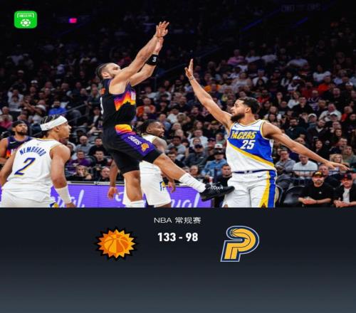 第四节太阳狄龙-布鲁克斯拿下6分,步行者杰-赫夫拿下3分,最终太阳133-98战胜步行者
