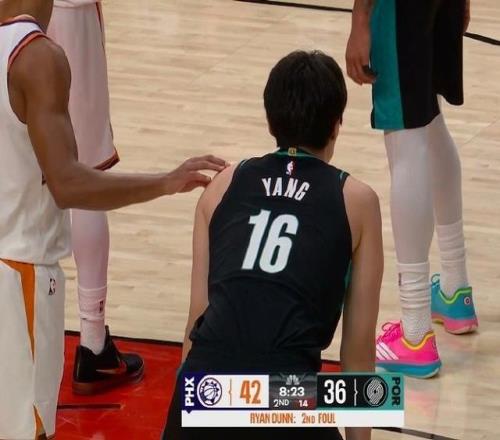 本场比赛进行到第二节8分钟左右时,杨瀚森再度替补登场,这是他时隔8场比赛后再度在常规赛中代表开拓者上场。上一次杨瀚森在常规赛出战还是在10月30日,他在开拓者客胜爵士的比赛中出场4分钟,拿到了2分1失误的数据。