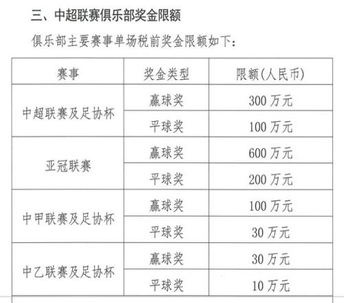 俱乐部主要赛事单场奖金亦有明确封顶。例如,中超联赛及足协杯赢球奖不得超过300万元,亚冠赢球奖不超过600万元。此外,各俱乐部还可设立“机动奖金”,但总额受控(中超1000万、中甲600万、中乙300万),且支出纳入年度总限额。
