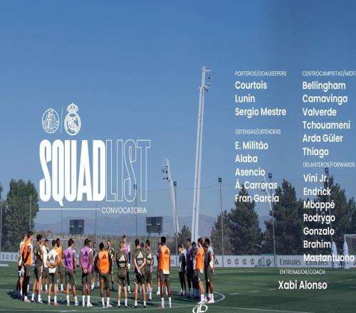 - 皇马本轮西甲名单:姆巴佩、贝林厄姆等在列,赫伊森缺阵
